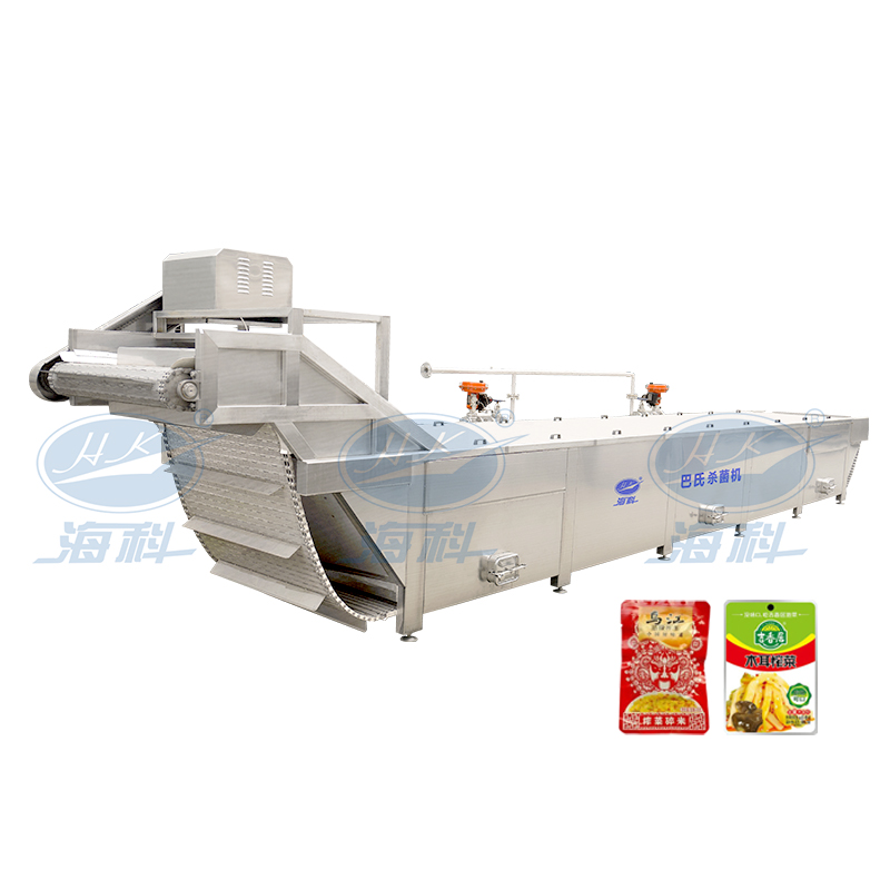 在食品、飲料、制藥等行業中,要求對一些包裝完畢的產品進行水浴式滅菌,被包裝好的產品放在可調速的不銹鋼網帶上,在傳遞帶的作用下按順序進入滅菌箱體內,經由“高溫水為介質”殺菌后,再由傳送帶帶入箱體均勻冷卻,從而達到產品殺菌要求。殺菌、冷卻機連續運轉,已滅菌的包裝產品被源源不斷送入下一生產線。