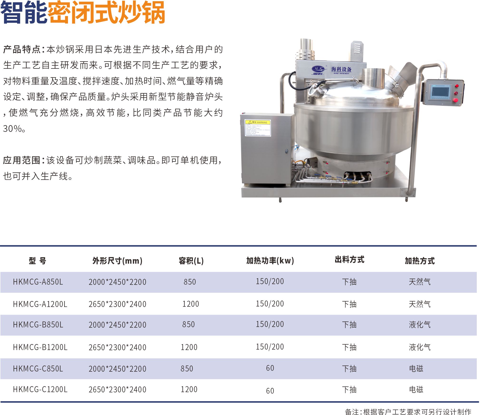 本炒鍋采用日本先進生產(chǎn)技術(shù),結(jié)合用戶的生產(chǎn)工藝自主研發(fā)而來。可根據(jù)不同生產(chǎn)工藝的要求,對物料重量及溫度、攪拌速度、加熱時間、燃?xì)饬康染_設(shè)定、調(diào)整,確保產(chǎn)品質(zhì)量。爐頭采用新型節(jié)能靜音爐頭,使燃?xì)獬浞秩紵咝Ч?jié)能,比同類產(chǎn)品節(jié)能大約30%。